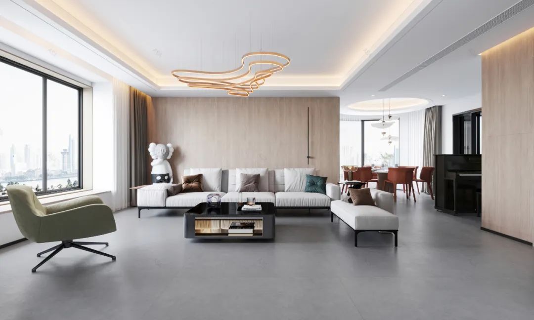 墙面攫取中华7000年布文化精髓的颜值新品健康瓷墙板,搭配地面微水泥止滑+,颜值享受,心情倍加。更有立体精雕细腻触感,柔和安心,让居家的每一天都似度假。